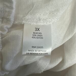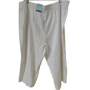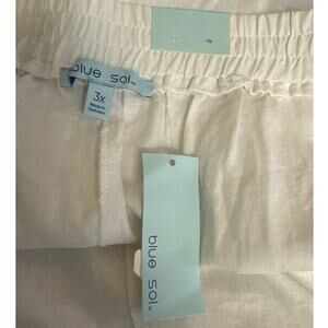 NWT Blue Sol 3X White Linen Blend Crop Pants Flat Front, Elastic Back, Tie Front