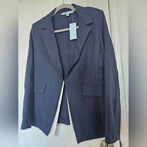 NWT Blue Sol Navy Blazer Jacket Blazer Sz. M with Off White Bottom Trim Unlined