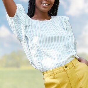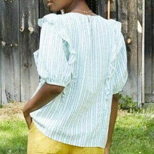 NWT Blue Striped Puff Short-Sleeve Ruffle Blouse - Women's Sizes XS, S Tops