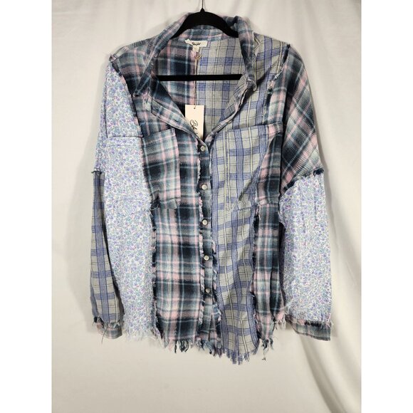 NWT Blue Velvet Womens Shirt Button Up Unique Mixed Pattern Boho Western L
