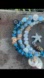 NWT Blue White Beaded Bracelet with Starfish Shell Charm stack ocean beach theme