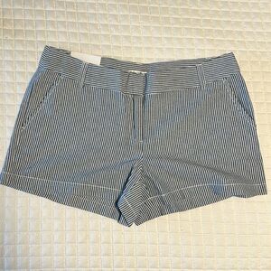NWT Dalia Collection brand 3.5” inseam shorts with working front and back pockets and 100% Cotton! Navy blue and white stripe shorts. Measures 17.5” across waist, approximately 13” leg opening, and approximately 13” top of shorts to bottom hem.