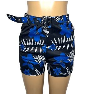 NWT Blue and Black Women Set Size L Stretchy Belt Short and Wrap Sleeveless Top