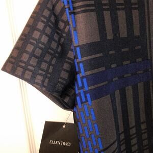 NWT Blue and Brown window pane short sleeve midi shift Dress size 10 Ellen Tracy