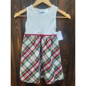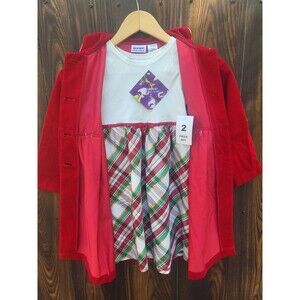 NWT Blueberi Boulevard two piece sleeveless plaid dress with red velvet button overcoat, size 6-6X.