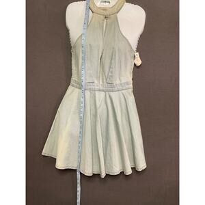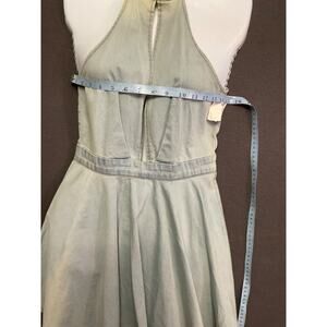 NWT Bluefaith Y2K Style Open Back Halter Mini Dress S Light Wash Denim High Neck