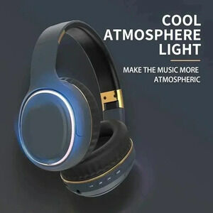 NWT Bluetooth Headphones with RGB Lights, Foldable Wireless Over-Ear Headphones with Hidden Mic for Cell Phone, PC, Laptop, Suitable for Music, School, Workouts, and Gaming (Blue). Professional seller. Same or next day shipping. Smoke Free and Pet Free Home.