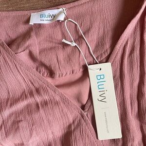 This stunning Bluivy maxi dress in a soft pink hue features a flattering V-neckline, true wrap style and elegant flutter sleeves. Perfect for wedding guests, the sundress style offers a graceful flow and comfortable fit, making it a versatile choice for various occasions. New With Tags