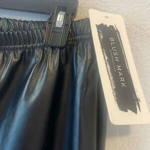 New with tags black faux leather pants. Blush Mark size large. Elastic waist. Laying flat the waist measures 14 inches. Inseam is 30 inches.