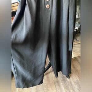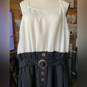 NWT Blush J White and Black Paperbag elastic waist buttons pantsuit Sz 10. White top spaghetti straps paperbag waist gathered elastic four buttons wide legs strap to bottom 47” waist 28” Rise 13” approximately 19” strap to waist New with tags very cute