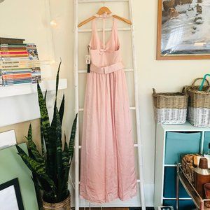 NWT White by Vera Wang V Neck Halter Gown Bridesmaid Dress with Sash in Blush