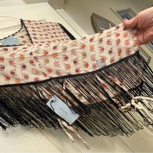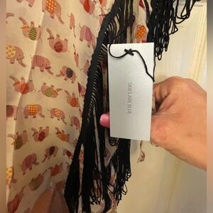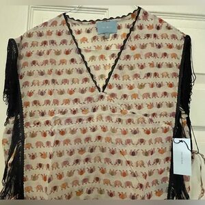 NWT- BoHo Style Linen elephant Print fringe shirt, tie sides