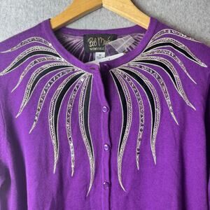 NWT Bob Mackie Cardigan Sweater Women’s Medium Purple Wearable Art Sequins Retro