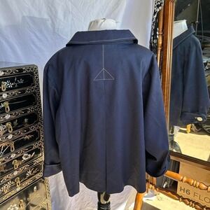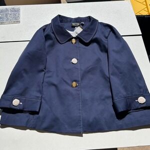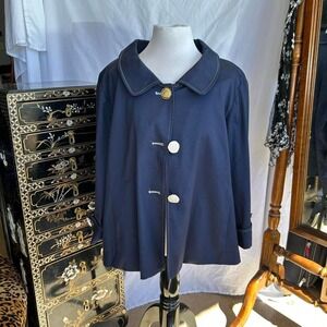 NWT Bob Mackie Navy blue button-up jacket with white piping and gold buttons
