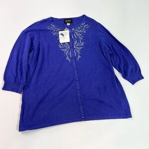 NWT Bob Mackie Sweater Womens Medium Blue Embroidered Sequin Button-Up Cardigan
