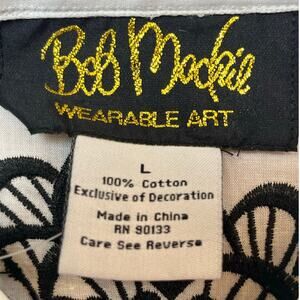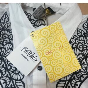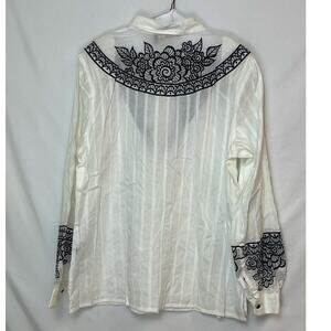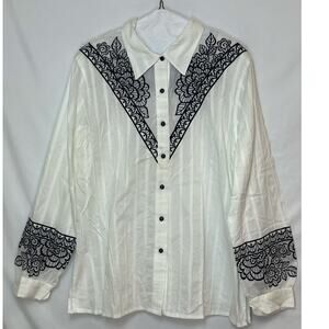 NWT Bob Mackie Women’s L White Black Embroidered Button Front Long Sleeve Blouse