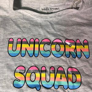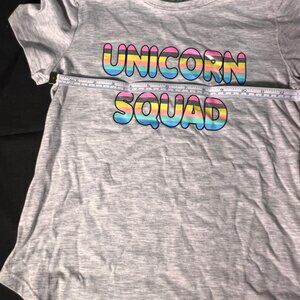 NWT Bobbie Brooks Sz M (7/8) Girls Unicorn Squad Gray Short Sleeve High Low (D)