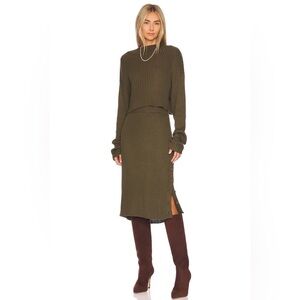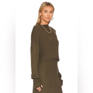 NWT Bobi Cropped Long Sleeve Ribbed Pullover S Army Olive Green