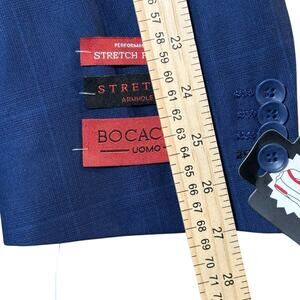 Elevate your wardrobe with this stylish Bocaccio Uomo Paris blue check stretch blazer! This sport coat is brand new with tags and ready to wear. The R56/W50 size ensures a comfortable and flattering fit.