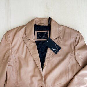 NWT Bod & Chritensen AURIANA Single Breasted Leather Blazer L Sand