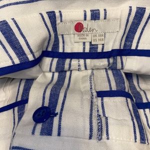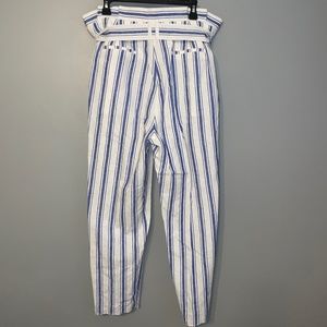 NWT Boden Blue Striped Linen Blend High Rise Paper Bag Waist Belted Pants Sz 14