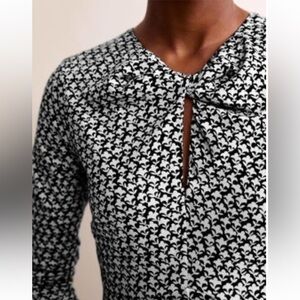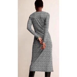 NWT Boden Empire Knot Midi Jersey Dress Stretch Black Lily Sprig Long Sleeve 4R