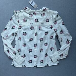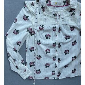 NWT Boden Floral Crochet Trim Blouse in Ivory Wild Pansy US size 4 NEW