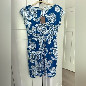 NWT Boden Florrie Jersey Dress Indigo Bunting Abstract Charm Floral Blue White