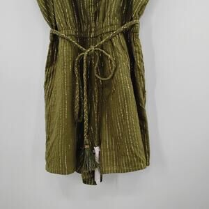 NWT New With Tags Boden Grecian Playsuit Romper Green Metallic Gold Striped Pockets Tassel Tie Waist Sleeveless D0674 Size 12
