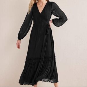NWT Boden Long Sleeve maxi Wrap Dress Black spring fall
