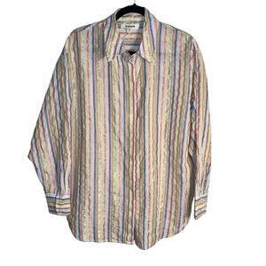 NWT Boden Multicolor Metallic Stripe Oversized Cotton Button‑Down Shirt US 8