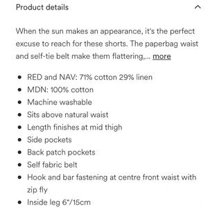 NWT Boden Paperbag High Waisted Linen Blend Shorts in Navy size 10