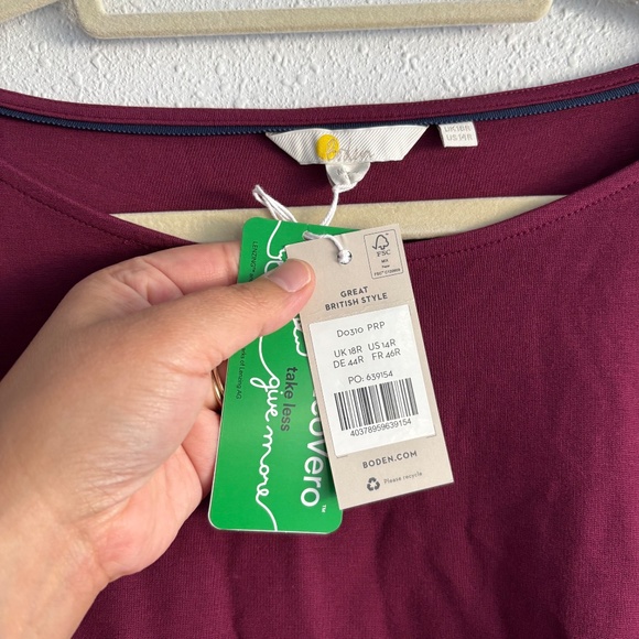 NWT Boden Raspberry Purple Long Sleeve Mini Dress with Waist Tie