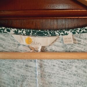 🛍 NWT Boden V-neck Jersey Mini Dress dark green white print D0555 BGR size 12. Description included in pictures. V-neckline with short cuffed sleeves, empire waist, loose fit, and mini length. In excellent condition, never worn! Tags still attached! Medium weight breathable material 100% cotton. Size 12R.