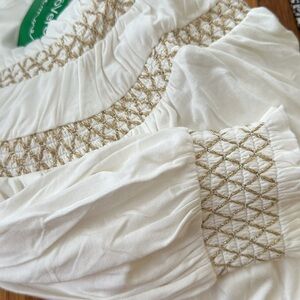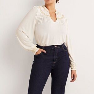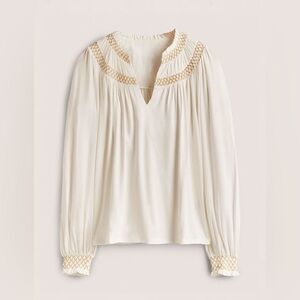 NWT Boden yoke smocked metallic cream long sleeve top blouse