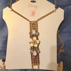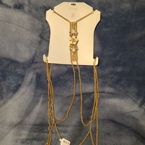 New with Tags. Body Chain is like a necklace that has embellishments in the front and goes around the waist. I think it could probably be worn backwards to enhance an open back wardrobe item.