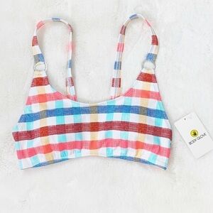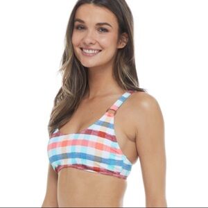 NWT Body Glove La La Land Milan Bikini Top In Multi Stripe Plaid Blue/Red