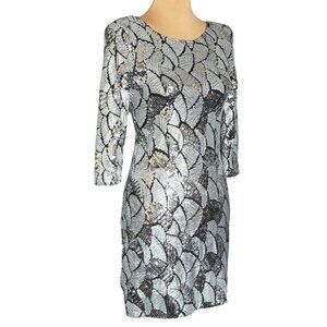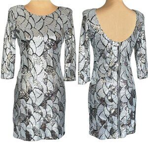 Sexy Body Language Paris Silver Sequin Mini Cocktail Sheath Dress.