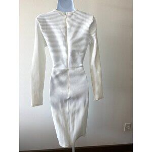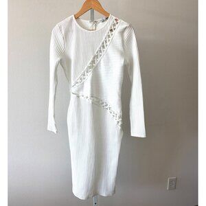 Knit Dress, Long Sleeve Dress, White Midi Dress, Geometric Cutout, Figure-Hugging
