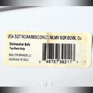 NWT Boelter Brands Wisconsin Badgers Melamine Square Bowl, 4.5-quart