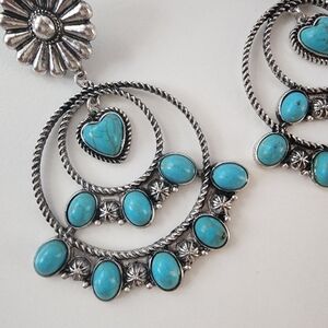 NWT Bohemian Antique Silver Heart Turquoise Stone Dangle Earrings