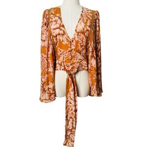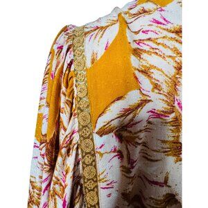 NWT Bohemian Small Band Of The Free Top Blouse Gold Blush Pink Paisley Print