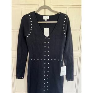 New with tags Bohme size medium black sweater dress with silver stud detail. Super soft and stretchy. V-neck. 16 1/2” from armpit to armpit. 15” across the waist. It is 44” long.
