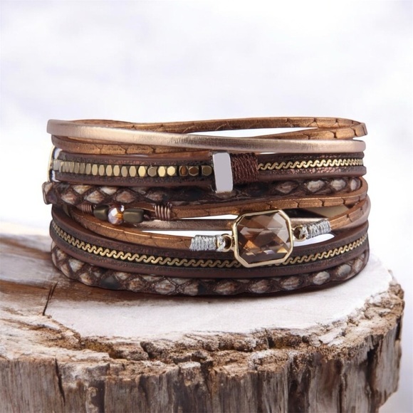 NWT Boho Multi-Layered Faux Leather Cuff Bracelet Size 15.16”