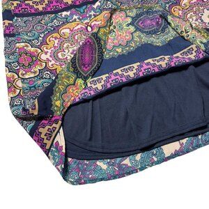 NWT Boho Printed Mini Dress Sz.L Shift Multi Embroidered 70s Festival