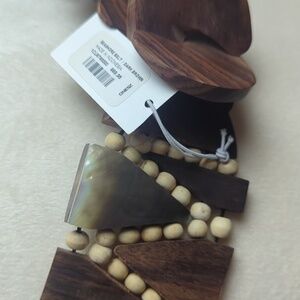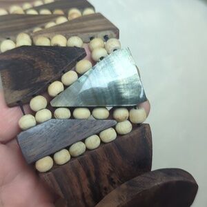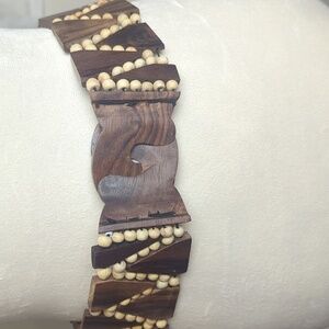 NWT Boho Wood & Beaded Seashore Belt Dark Brown Stretch One Size