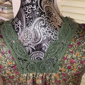 NWT Boho Floral Ruffle, Lace & Tie Chiffon Lounge Dress. Lined. Flowy.