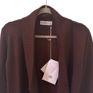 NWT Bonalla Ilian 100% Cashllama Open Ribbed Cardigan in "Dark Brown" Size Small