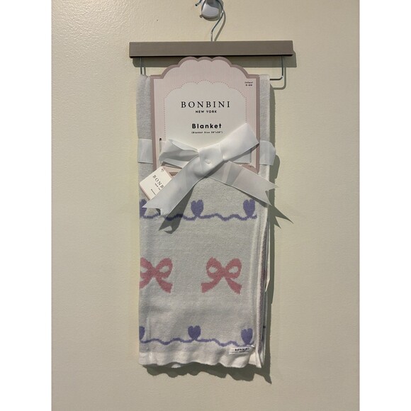 NWT Bonbini 38" x 28" Baby Blanket - Pink & Purple Bows/Flowers