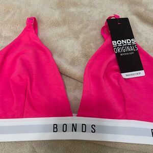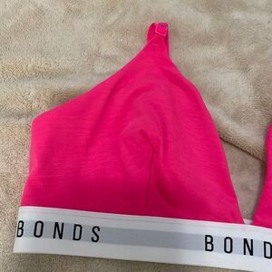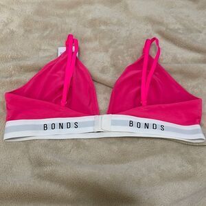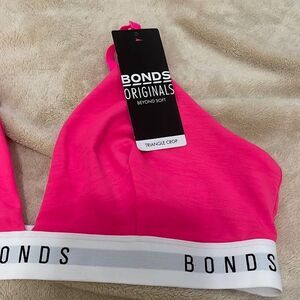Hot pink, triangle crop bra, bottom logo’s band, unlined